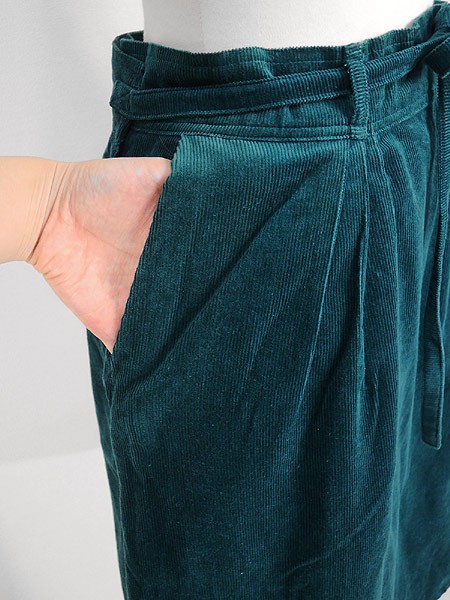カラーは青緑で素材はコーデュロイ。