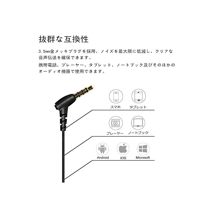 【마이크 내장,리모콘 부착 이어폰】마이크를 탑재하고, 핸드프리 통화 가능합니다.원 버튼의 콘트롤,전화에의 응답,통화 종료,음악 재생/정지,곡보내다/복원 등의 조작 를 할 수 있습니다.유선의 콘트롤: 1회 누르기:착신 응답/통화 종료/음악 재생/일시정지,2회 누르기: 다음 곡에,3회 누르기:전의 곡에.