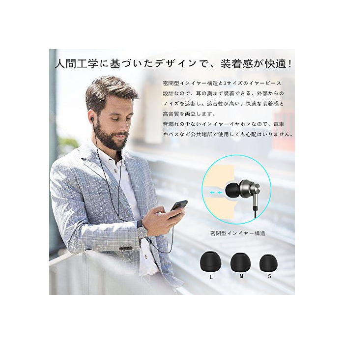 원본상품명: カナル型イヤホン Eonfine 有線イヤホン Hi-Res 高音質 ハイレゾ音源 【メカ1年保】 マイク付き リモコン付き ハンズフリ通話 コンパクト 量 通勤通に最適 着け心