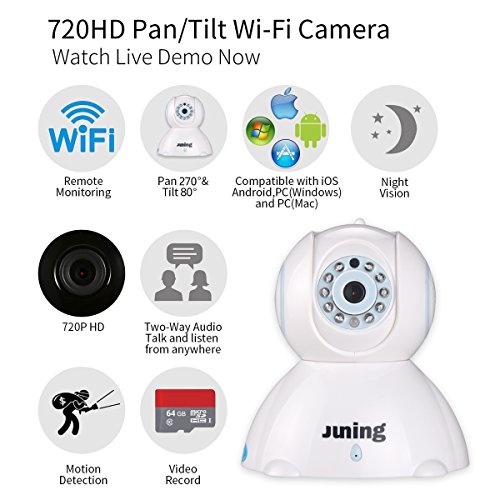 -. Title : Home Wifi Wireless Security Camera System 720P HD Pan Tilt-JUNING C42 IP Camera (Day/Night Vision,baby monitor,2 Way Audio,SD Card Slot, Alarm)