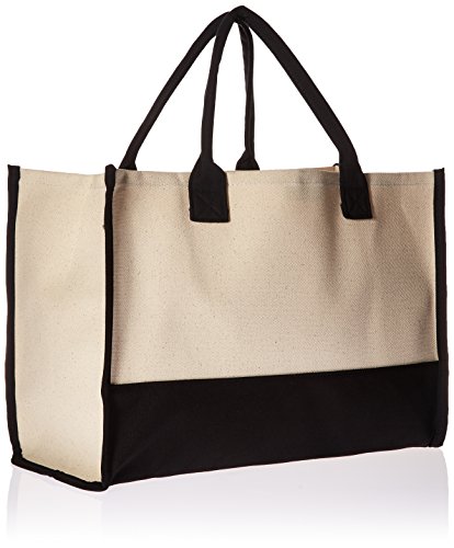 Natural and black canvas tote features black embroidered initial. A classic bag perfectly suited for the mall, office, beach, boating and all your everyday travels.