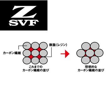 Z-SVF카본:다이와는 로드 성능에 무엇보다도 영향을 주는 카본 씨트에 있어서,섬유 그 자체의 고탄성화는 물론,카본 섬유를 정리하는 접착제 적인 역할을 맡는 수지(레진)분량 에 대하는 기능 향상에(주목)착안.군살이라고도 하는 레진의 분량을 줄이고, 근육이 되는 카본 섬유의 밀도를 높이는 것에,보다 강하고, 보다 가볍고, 보다 가는 로드의 개발을 진행시켜 있는다.「Z-SVF」서는,소재의 제법을 처음부터 재검토 연구를 중복,이상 적인 카본 섬유 배열을 실현 한 다이와 사상 궁극의 고밀도 카본.