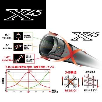 X45:카본 섬유의 감음 각도는 장대 처(먼저) 에 대해서 0°45°90°가 각각 굽혀《즈부레네지레》에 대해서 최대의 탄성을 가진다.다른 X구조와 같이 중간의 각도로 한 경우,각각의 탄성이 낮은 모아 둬 파워 로스의 원인이 된다.또한 중간의 각도로「X45」와 동등의 파워를 발휘 시키기 위해서는 상당한 중량 업이 필요하게 된다.가장 탄성율의 높은3곳의 각도를 채용 하고 있는다「X45」서는 로드의 변형을 막아 파워 조작성 감도를 향상 시키는 최적 구조이다(세계 공통의 상표로서「X토크」부터「X45」에 호칭 변경).