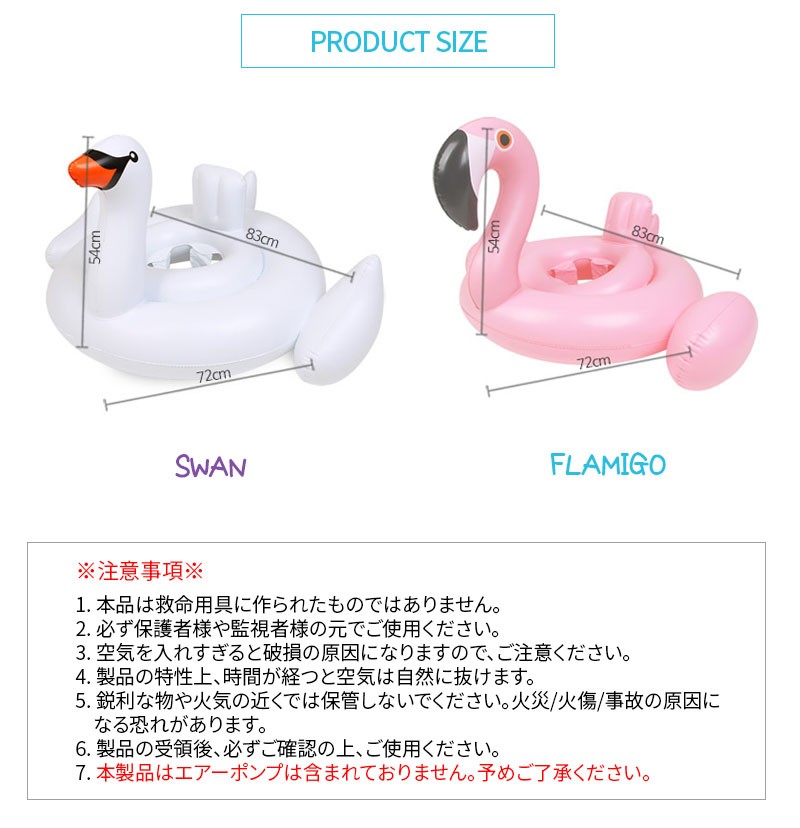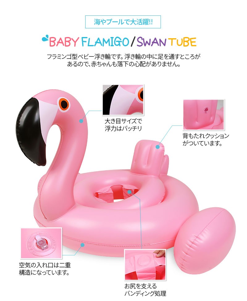 | 商品説明 | サマートレンドアイテム!大人気★ベビー浮き輪!!赤ちゃん用かわいい浮き輪☆フラミンゴ・スワンの2パターン!! |