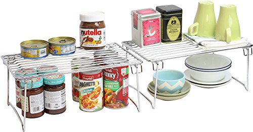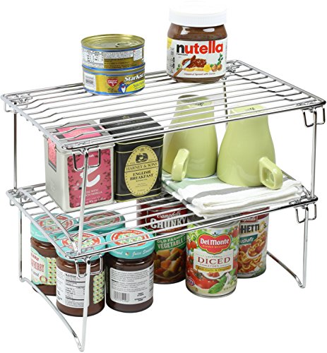 -. Title : 2 Pack - DecoBros Stackable Kitchen Cabinet Organizer, Chrome