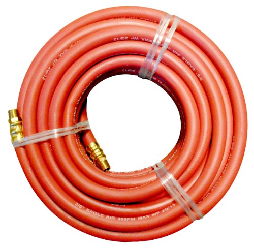 JGB Enterprises Eagle Hose Shop Air SBR Hose Assembly, Red, 1/4" Male NPT, 300 PSI Max Pressure, 3/8" Hose ID, 50' Length