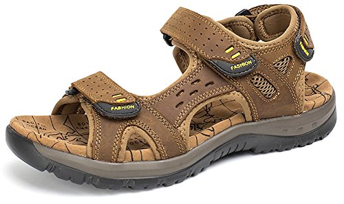 -. Feature : [Material]:Leather upper,to keep your feet cool,dry and deodorant. / [Feature1]:Open-toed design,anti-bacterial insole,make air circulate around,keep feet breathable and comfortable. / [Feature2]:Wear-resisting outsoles greatly match many activities,such as:outdoor,hiking,beach trip. / [Feature3]:Double handmade sewing ensures the durability. / [Recommend]:Must-have one comfortable leather sandals in summer for men to decorate summer look,perfect fit with casual wear,shorts,jeans,suits.Suitable for many occasions:indoors,outdoors,beach,office,buisness,fishing, etc.Size tips:True to size.If your foot is wide, we suggest you choose one size larger.