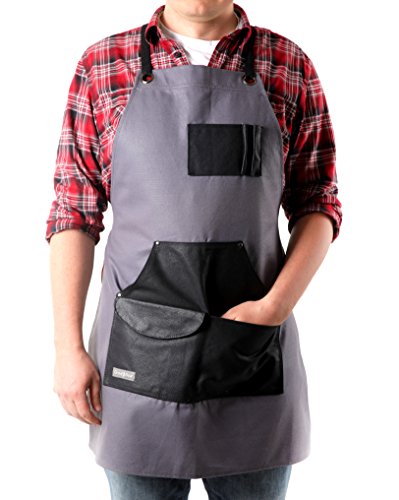 GUARANTEED SATISFACTION – This reinforced canvas apron comes in grey and black and is backed by enhanced durability and materials for true quality assurance.