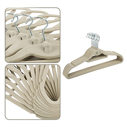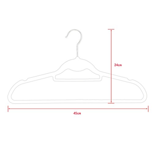 -. Feature : LARGE QTY: Pack of 50pcs Clothes Hangers to meet household at the most / EXQUISITE CRAFTWORK - Material: ABS Plastic+ Flocked+ Stainless steel Hook / ANTISLIP VELVET SURFACE - Non-slip velvet surface with notched shoulder keep clothes in position, gentle on garments & prevents slipping & creasing / SPACE SAVER - Increases your closet storage capacity; Ultra slim profile to maximize space in your closet / HEAVY DUTY- Extended and Widened Design is suitable for heavy clothes; Great for hanging Suits, Jackets, Pants, Shirts, Dresses, Blouses & Accessories