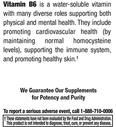 IMPROVES HEART, SKIN, AND IMMUNE HEALTH - Vitamin B6 is a versatile nutrient most commonly found in fish, liver, eggs, cheese, starches, and non-citrus fruits. It promotes heart health, a healthy skin appearance, and immune system support.