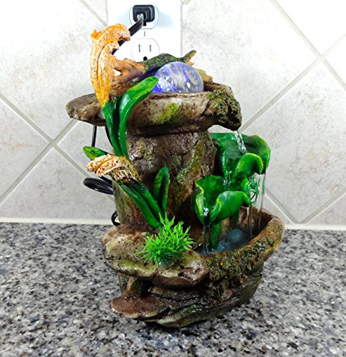Features LED lighting to illuminate the fountain.* Color can vary slightly on each fountain. Lighting can be different indoors and out as well as differences in computer monitors. Some fountains may appear darker because of the lighting in the room. So slight color variation is not a cause for return.