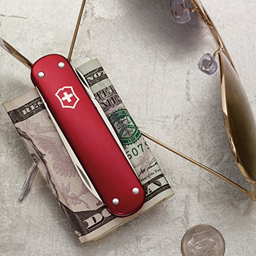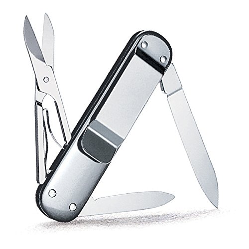 -. Feature : Features 5 functions to equip you for everyday adventures - including 2" blade, scissors, nail file with nail cleaner, and money clip (See product description for full list of features) / Stainless steel construction encased in polished silver alox scales provides sleek durability / The Money Clip Pocket Knife is a great multitasker; secure your cash and stay prepared for daily tasks with sophisitcation / Length: 2.913" (74mm), Height: 1.043", Weight: .988 oz. / Made in Switzerland; Victorinox provides a lifetime guarantee against defects in material and workmanship