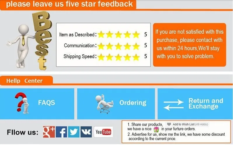 | 대한 판매 후 우리는 당신이 각 평가, 당신이 우리의 제품 또는 서비스를, 우리의 고객 서비스, 우리는 짧은 시간에 당신에게 만족스러운 솔루션을. |