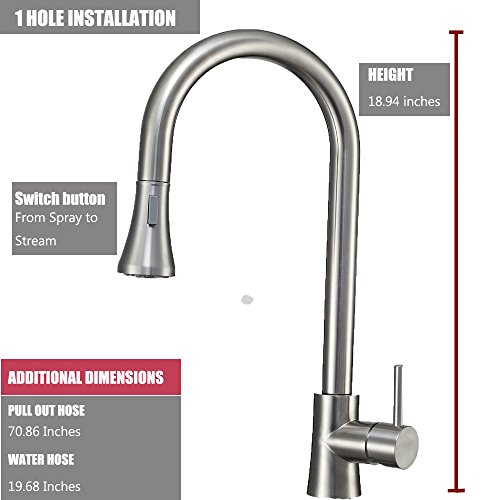 Richwealth Stainless Steel Kitchen Faucets with Single Handle Kitchen faucet CL-K02004(Switch From Spray to Stream)