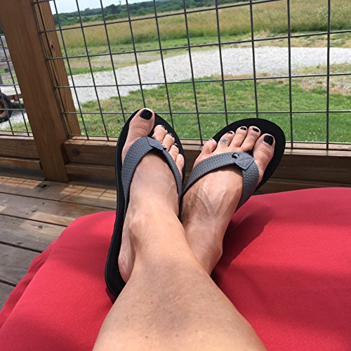 The molded soles have arch support and inclined sides that cradle and protect the foot bed. The sole has anti-skid tread and a slip resistant foot bed to keep the foot from sliding out. The upper straps are made of neoprene to make more water friendly. Available in black/gray and brown/khaki. Both look great with the Dry Dudz Hydro-Tech Women's Products. Need film flops for him? Check out the same flip flop at Men's Dry Dudz Boardwalk Flip Flop