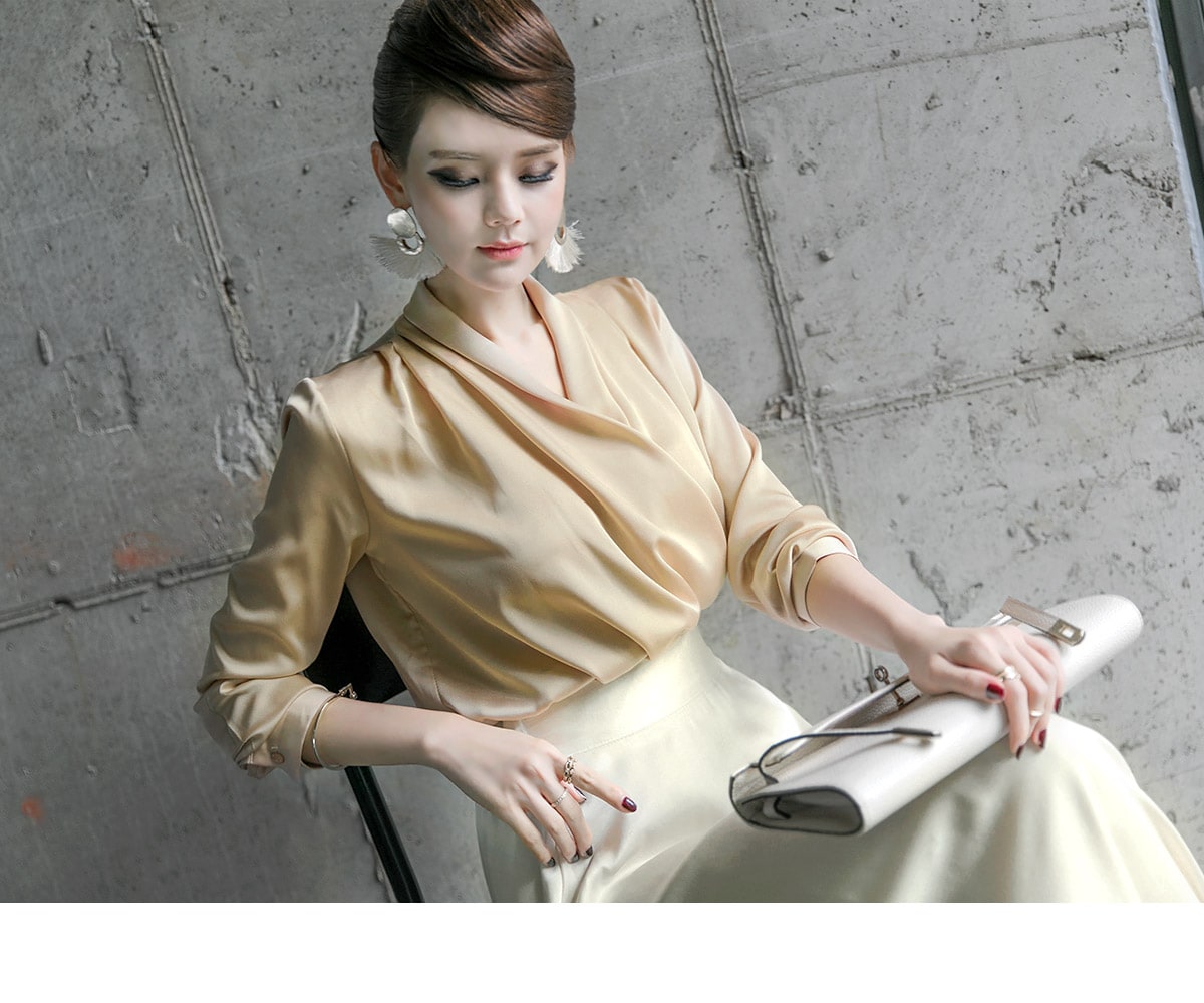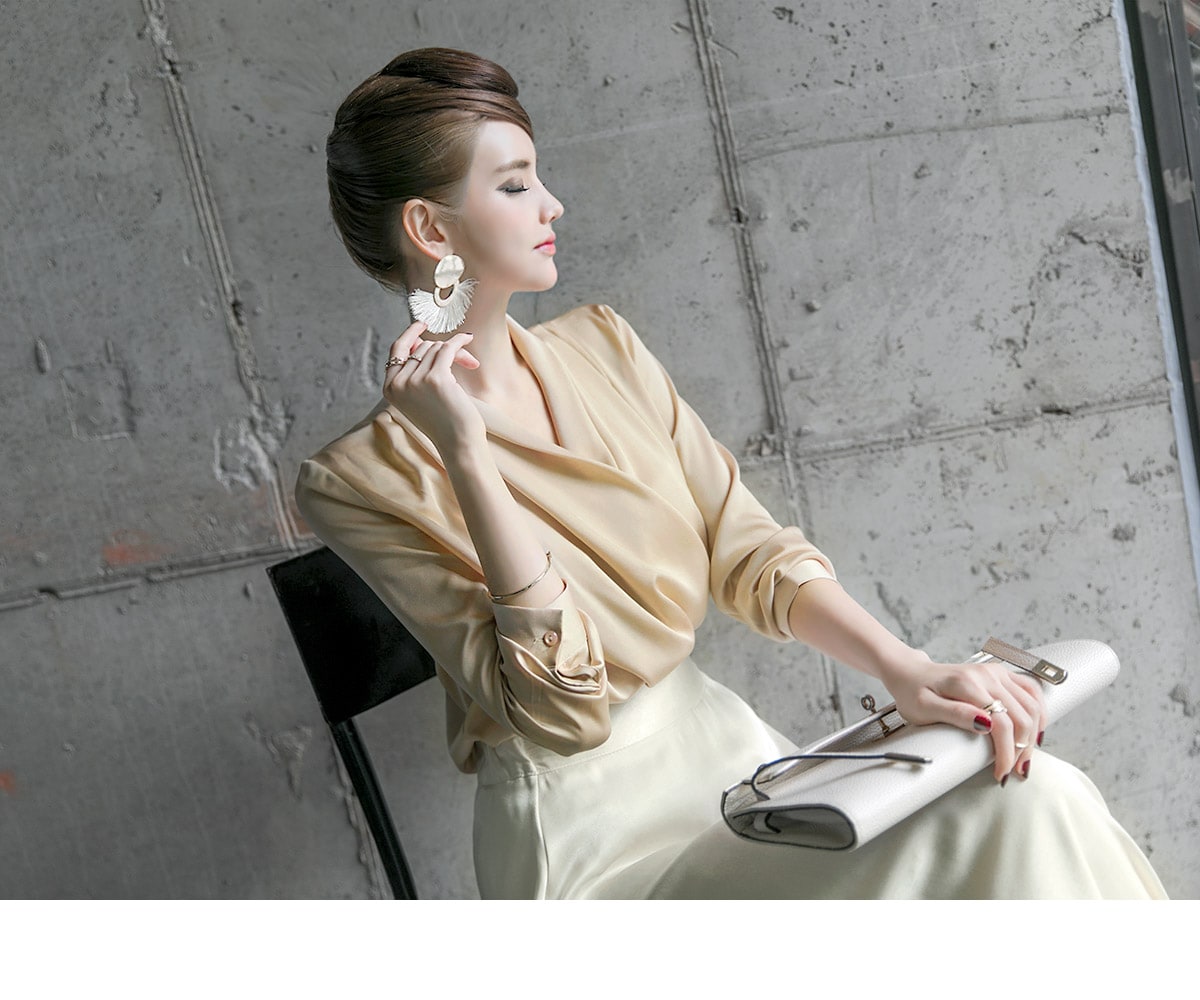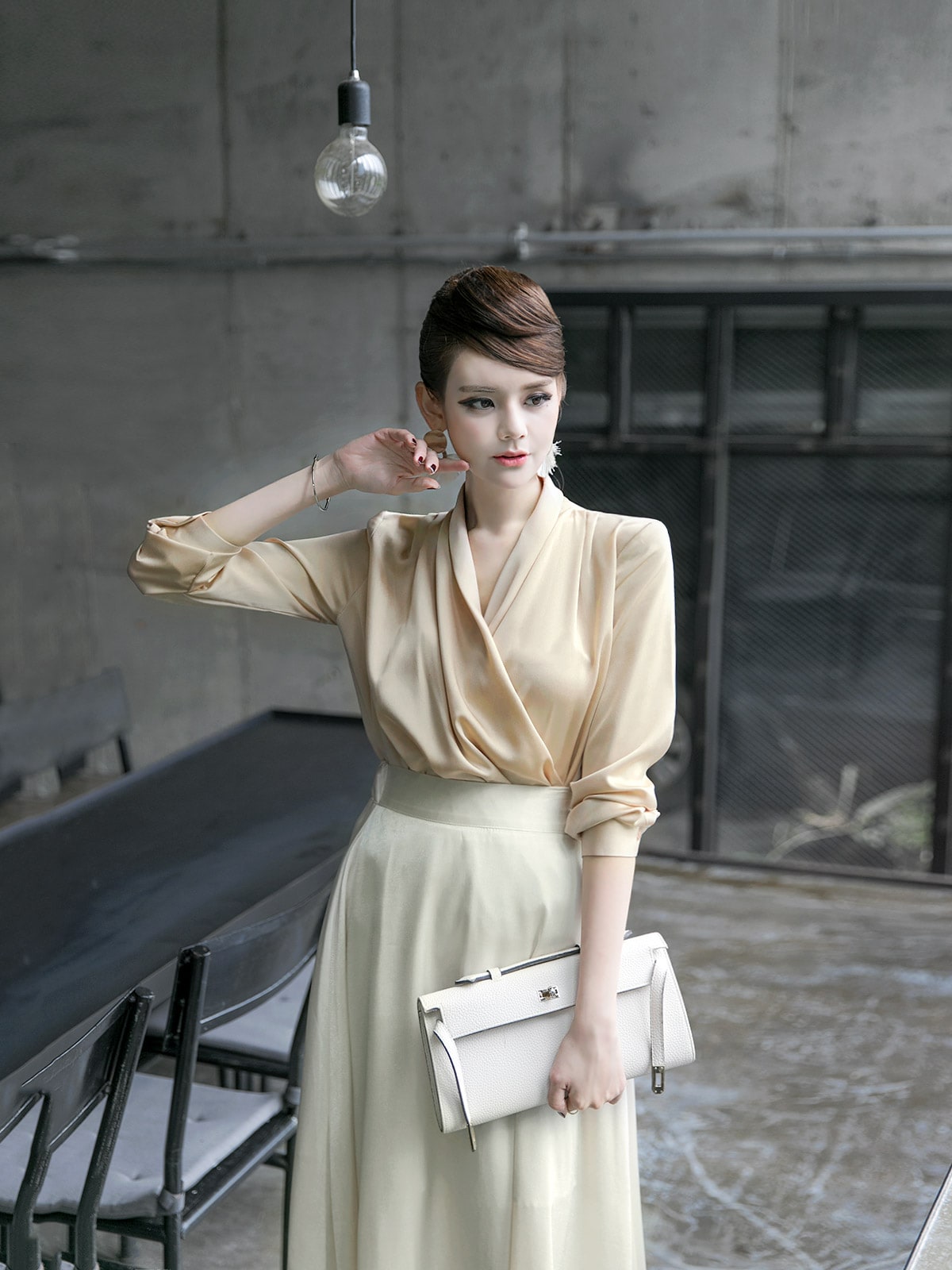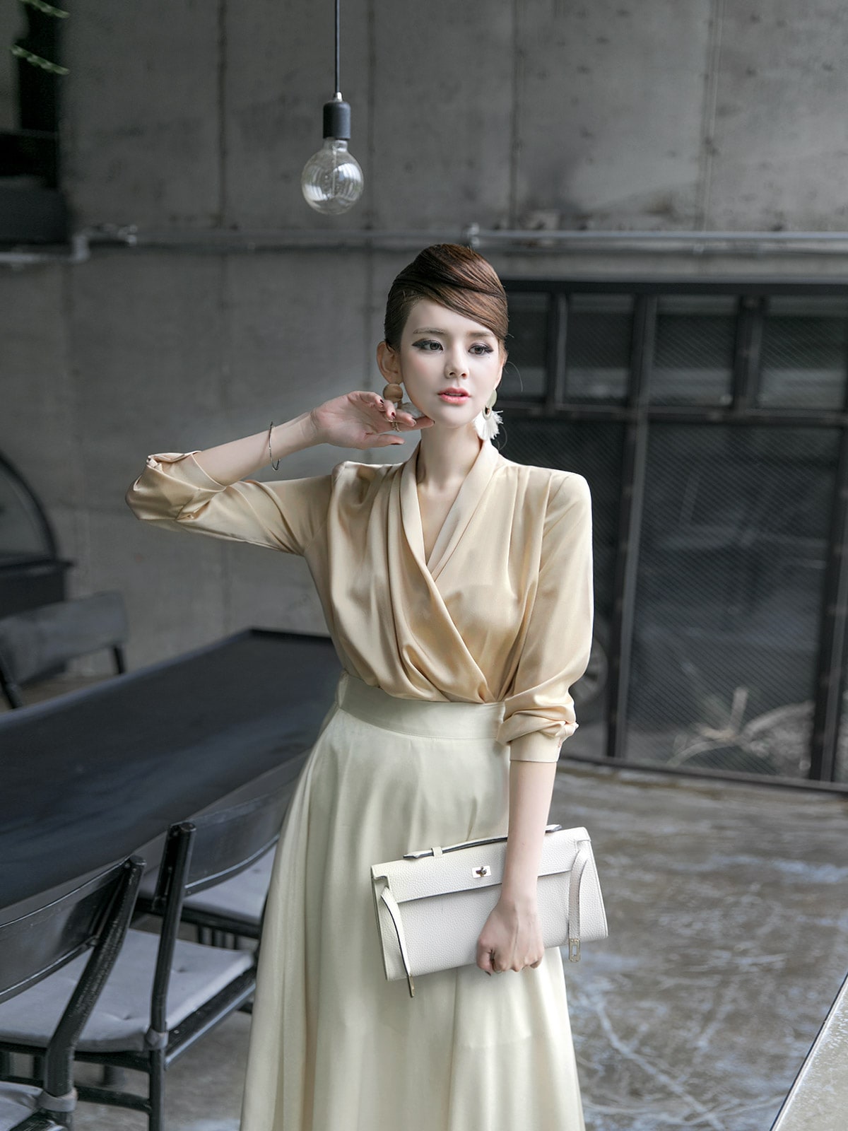 B2311 멜티 드레이프 셔링 블라우스 Beige