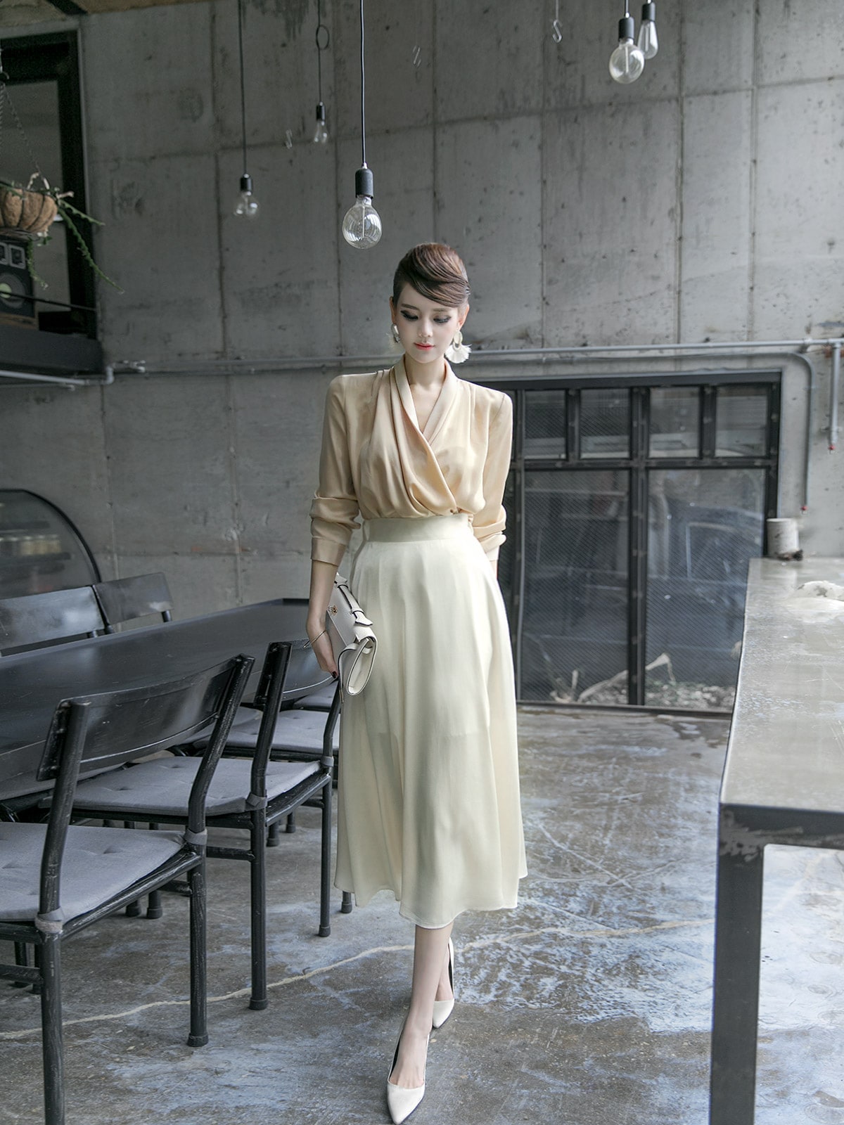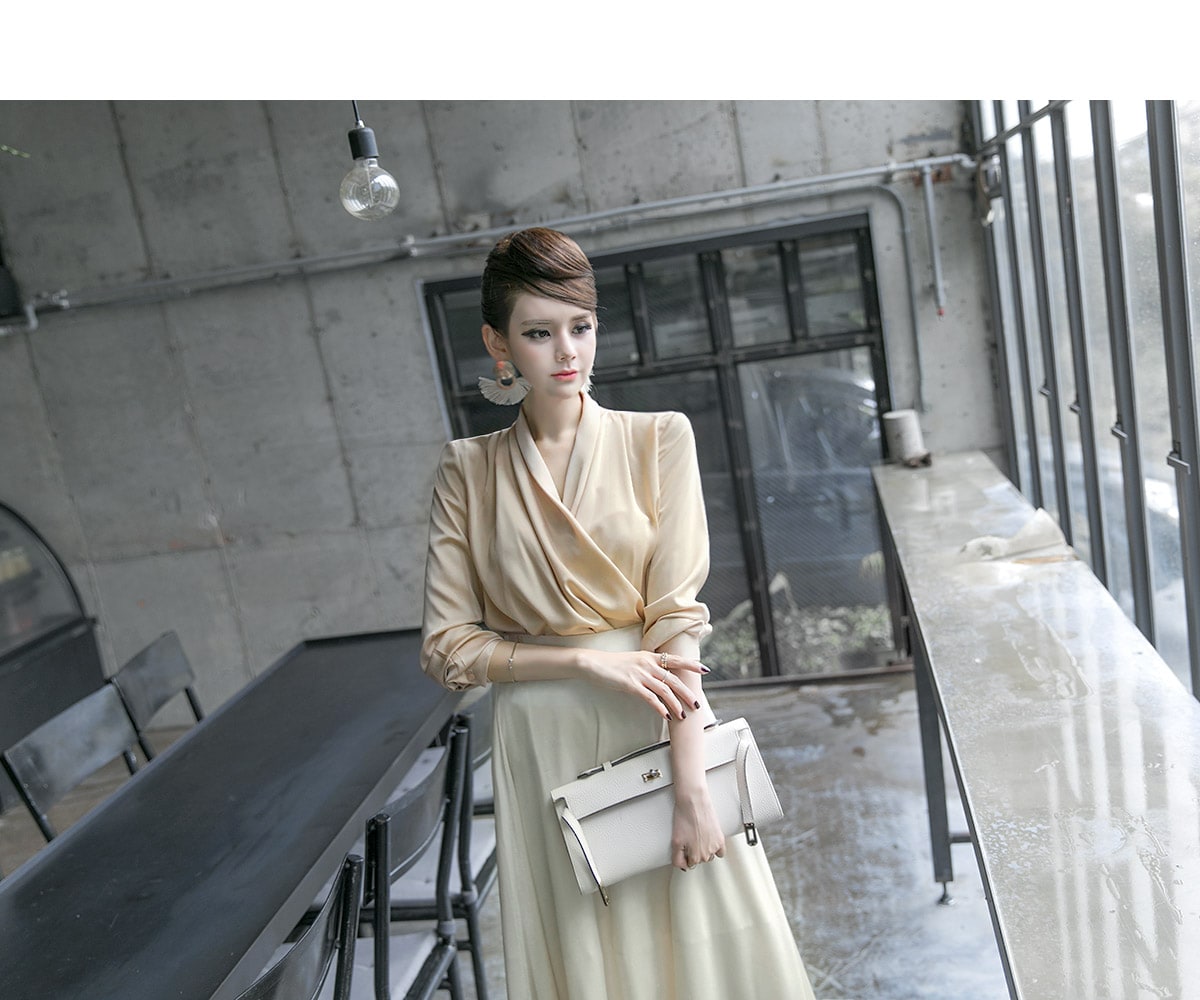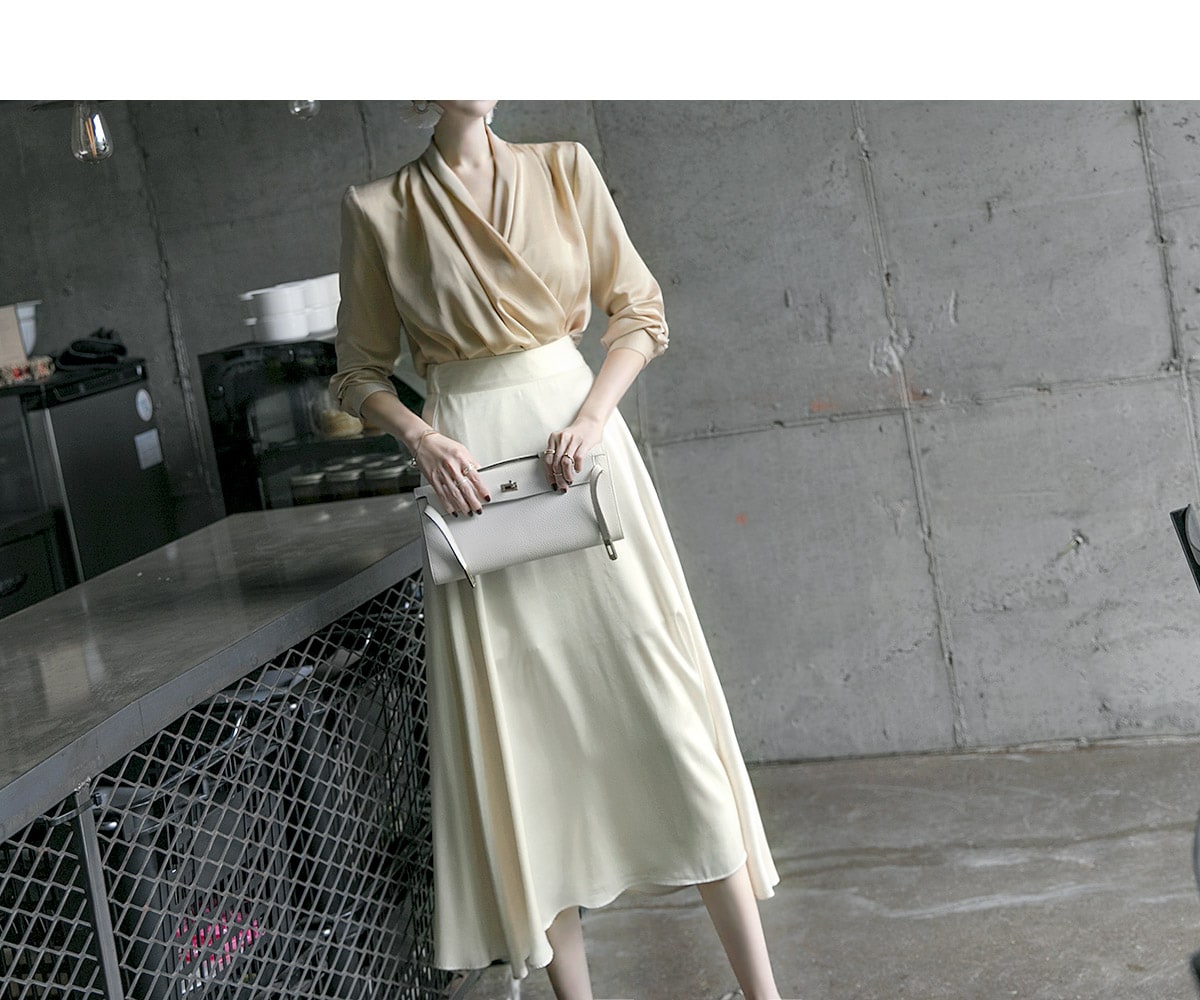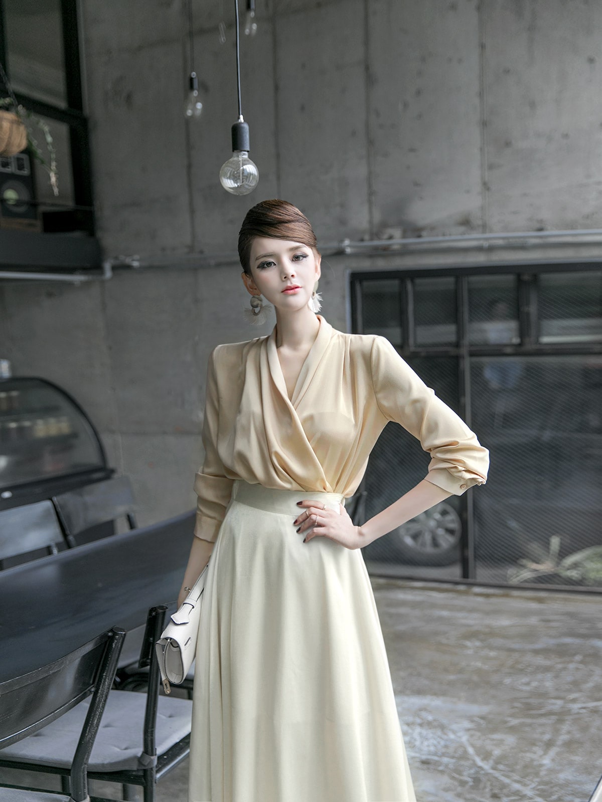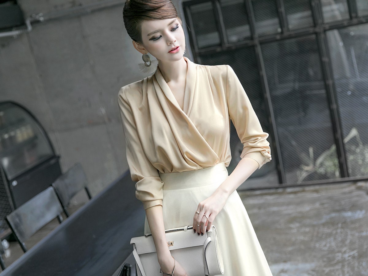 B2311 멜티 드레이프 셔링 블라우스 Beige