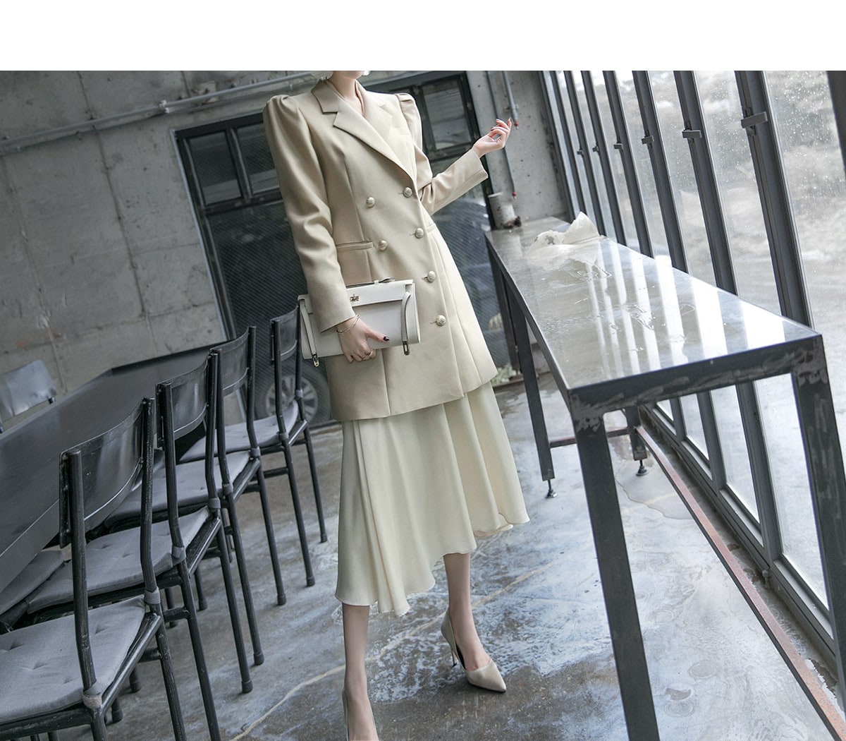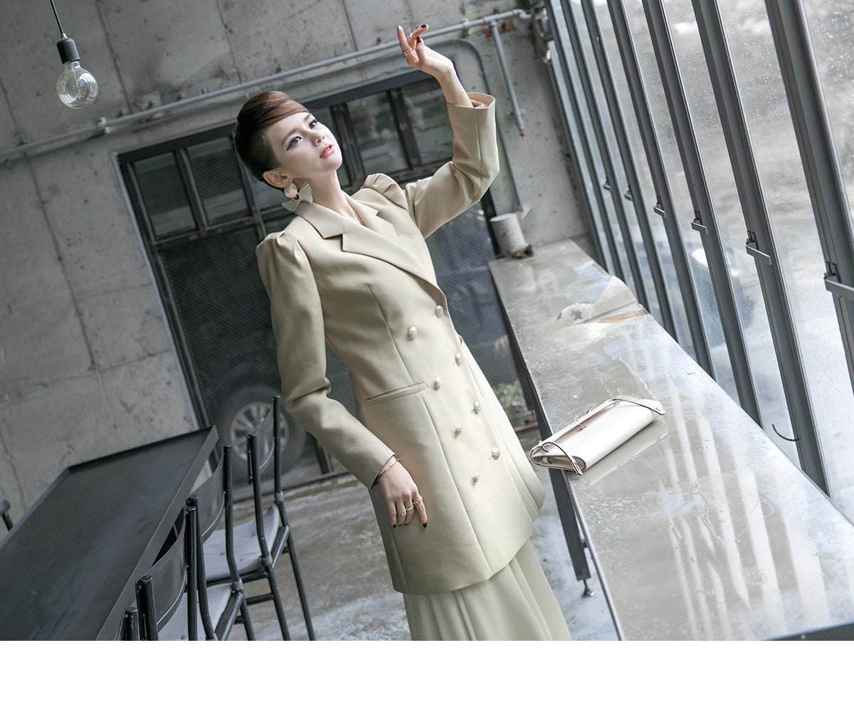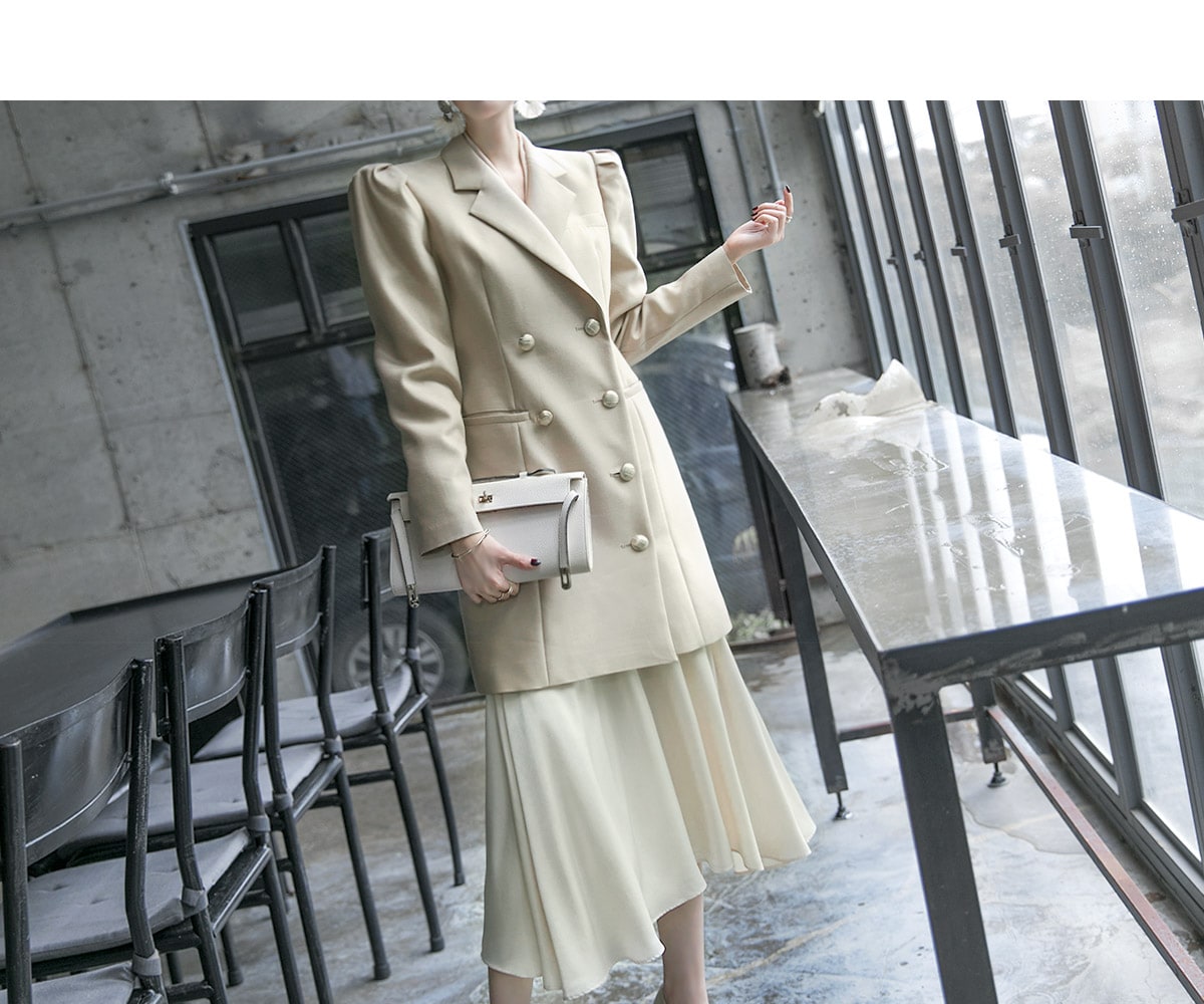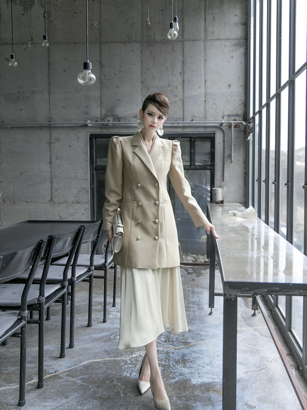 J-5022 로제 포인 숄더 더블 롱 자켓 Beige