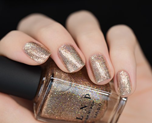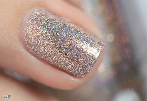 Clockwork is a jaw dropping bronze holographic with an extremely bright metallic finish. The assortment of metallic flakes coupled with a range of holographic particles, all dipped in a silky beige base, give Clockwork a truly unique combination of class and head turning vibrancy. Clockwork is part of ILNP's "Precious Metals" class of incredibly vivid metallic finish nail polishes; specifically formulated with various ultra-thin metallic flakes for a blinding sparkle with an undeniably rich finish and super-easy removal!Feature