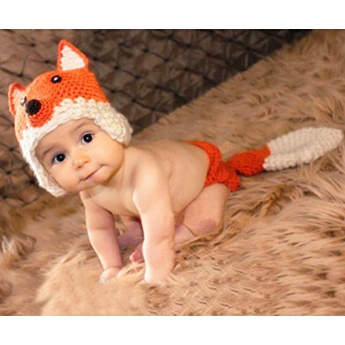 Tueenhuge Baby Photo Props Baby Girls Boys Knit Baby Outfits Costume Hat and Pants for 0-6 months baby(Fox)