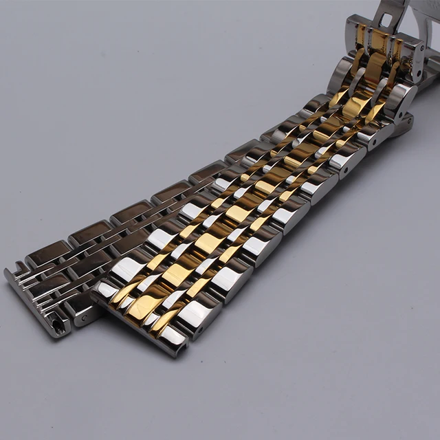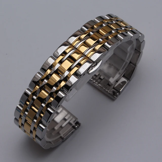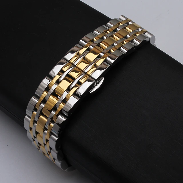 | [해외]스테인레스 스틸 7 포인트 시계 밴드 시계 스트랩 실버 혼합 골드 금속 butterfly 버클 팔찌 손목 14 16 18 20 22 미리메터 |