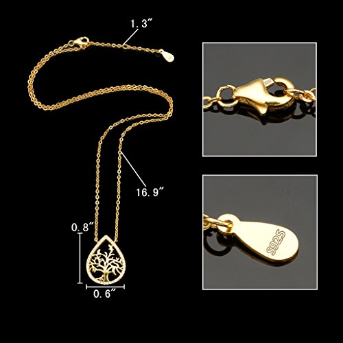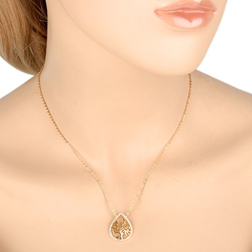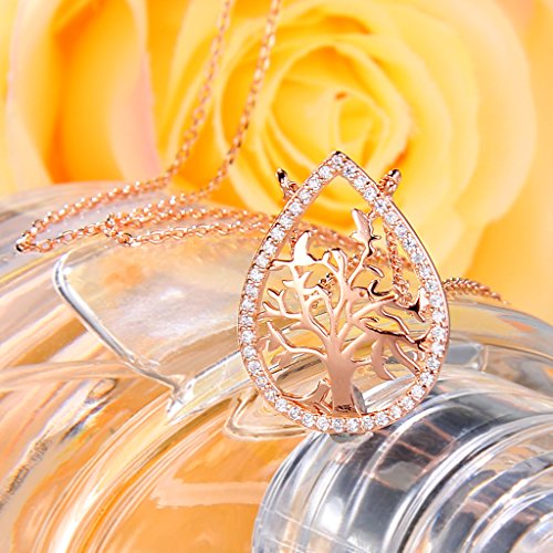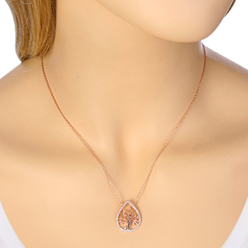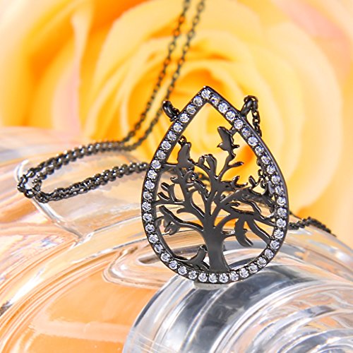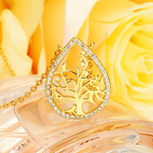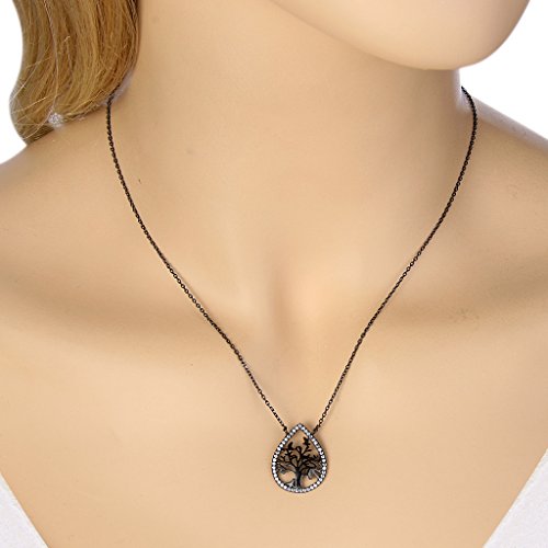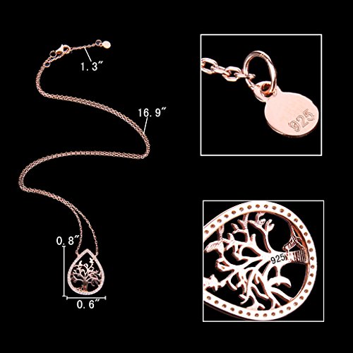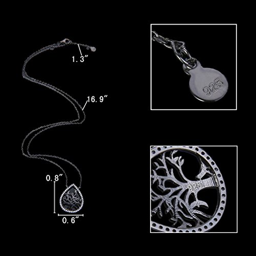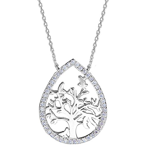 -. Title : EleQueen 925 Sterling Silver Full Cubic Zirconia Teardrop Tree of Life Bridal Pendant Necklace