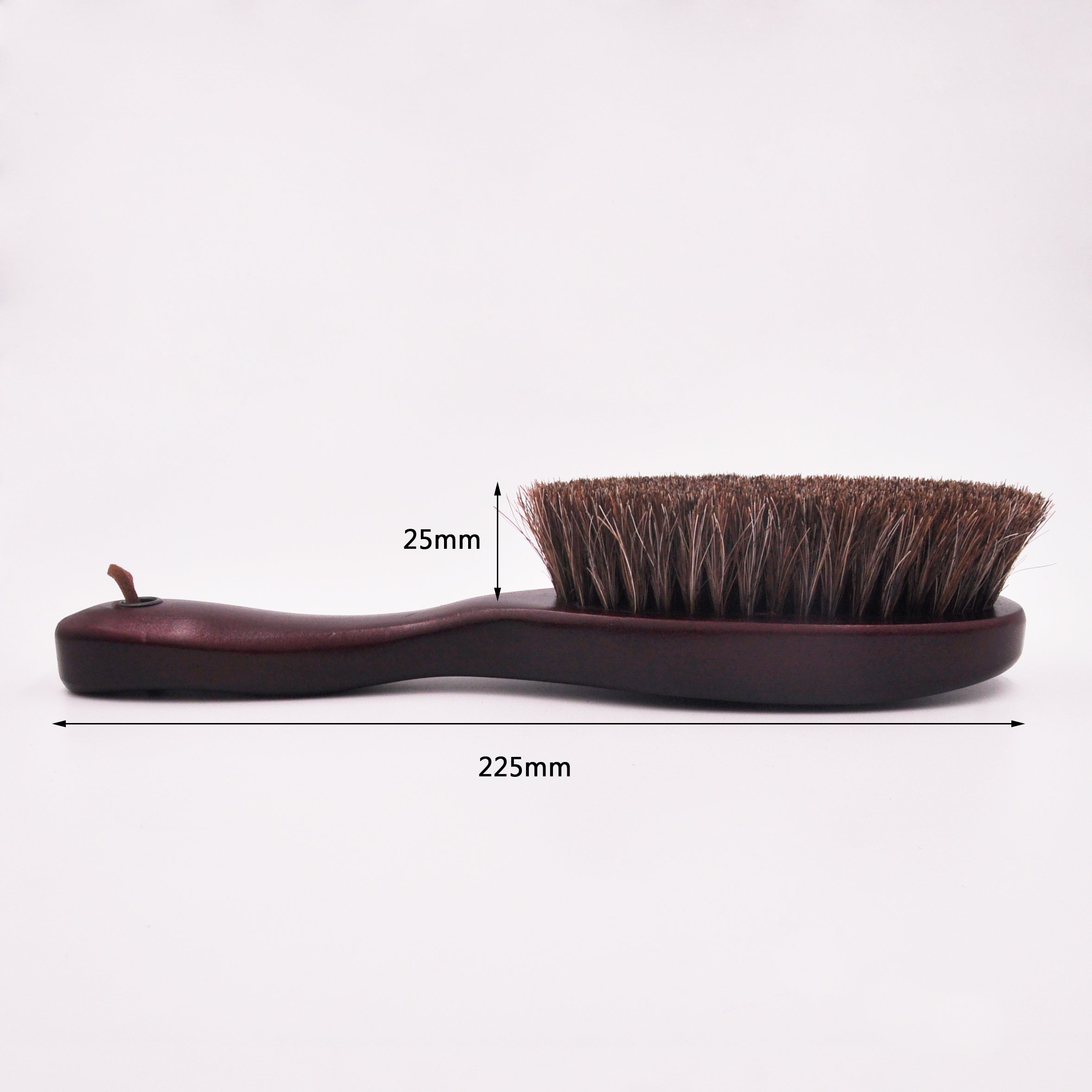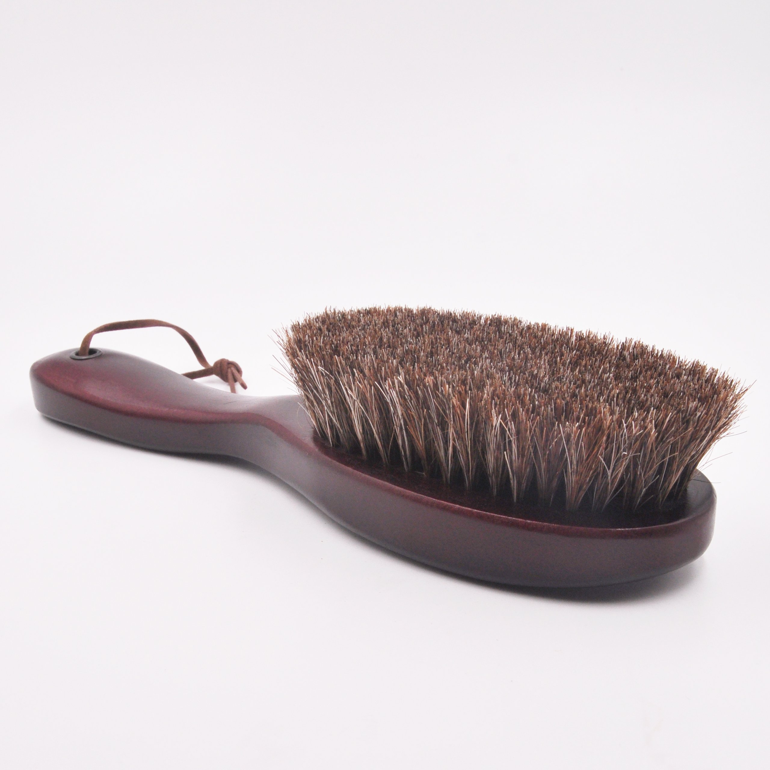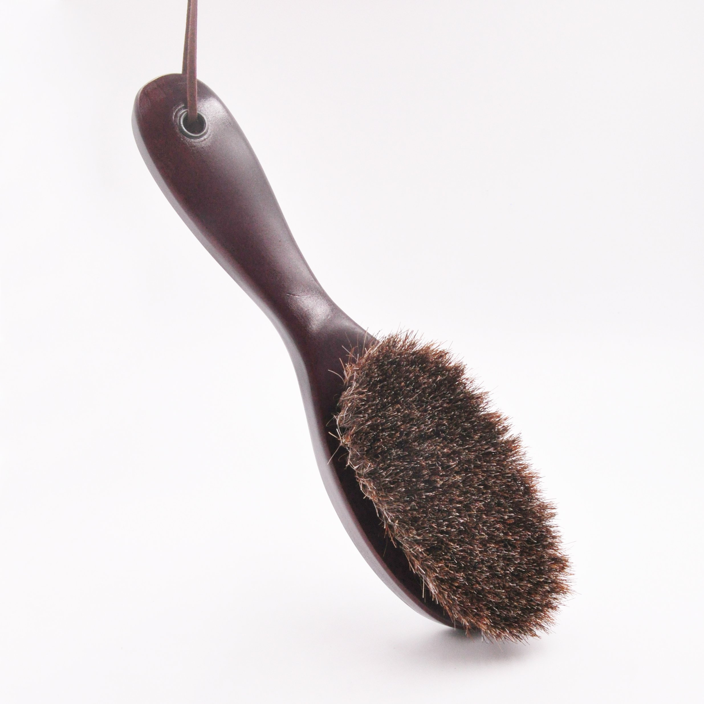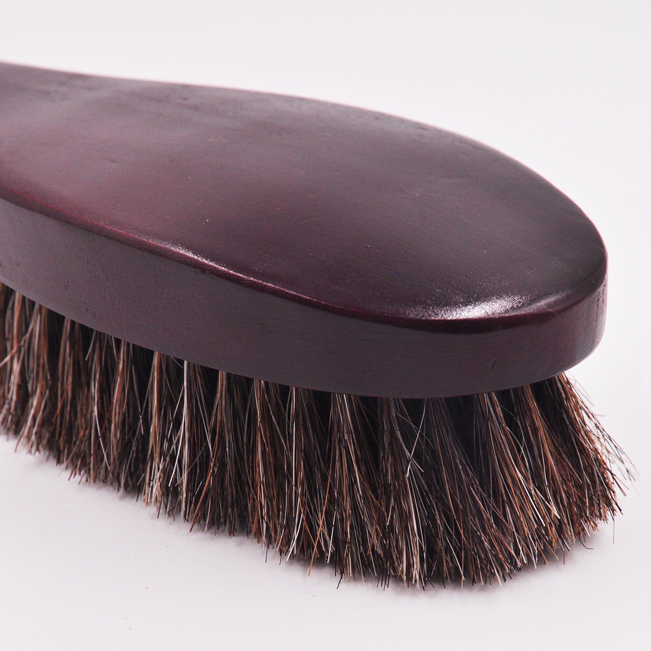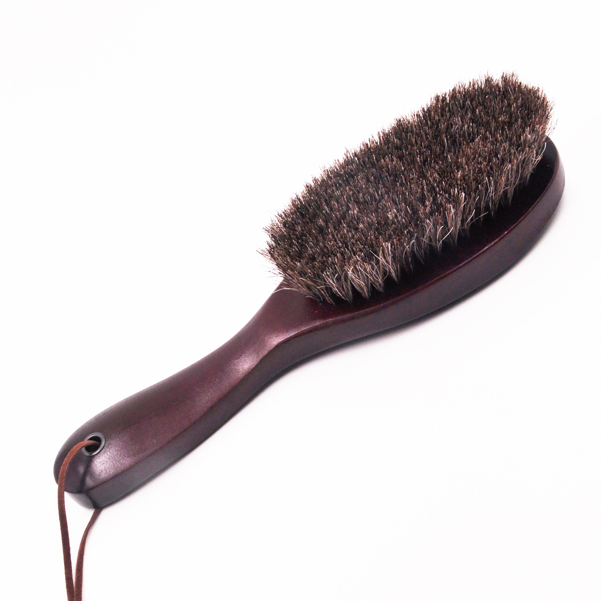 It is a new clothes brush that blends high technology material and static electricity removing fiber into white horse hair with supple hair tip and elasticity richness.