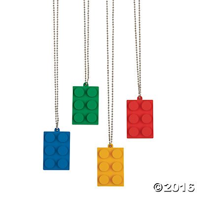 -. Title : Brick Building Block Party Necklaces - 12 pc