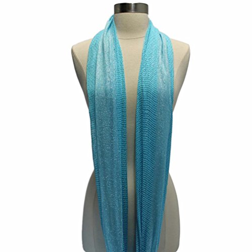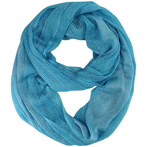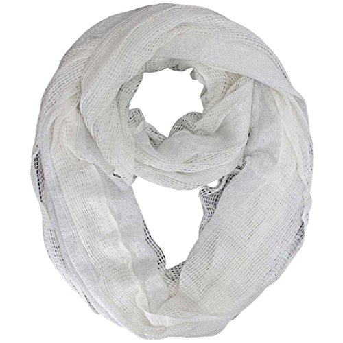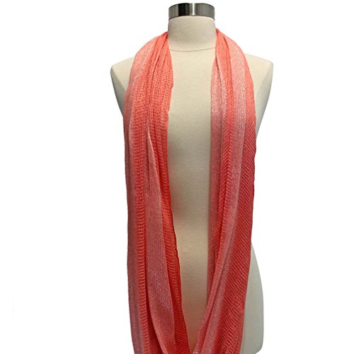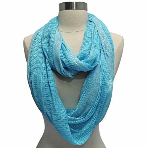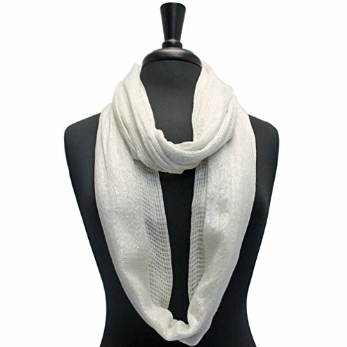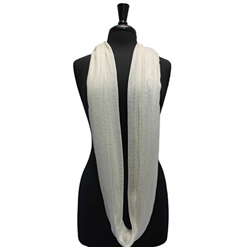 Studio : Luxury Divas Publisher : Luxury Divas Binding : Apparel Product Description Instantly lend a fashionable touch to your casual wear with this fabulous infinity scarf. Each end of this summer scarf is sewn together to create a stylish circular shape. Cool and refreshing, the open mesh weave of this infinity scarf makes it fun to coordinate with any outfit. The versatile circle design of this scarf means it can be worn in different ways. This beautiful infinity scarf is made from panels of mesh-like material with eye-catching silver metallic trim.