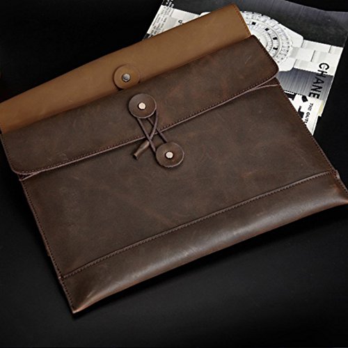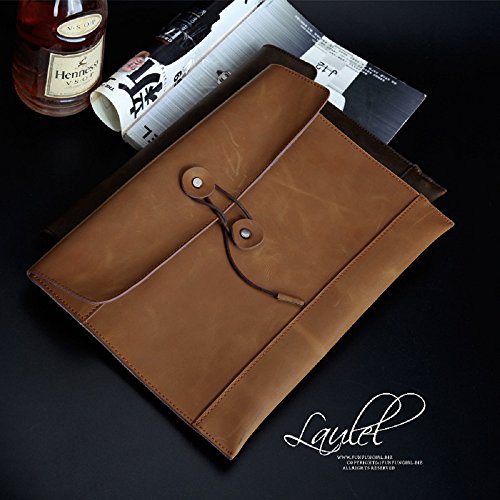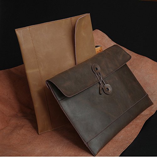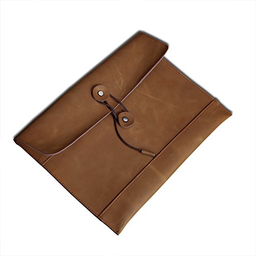 Morrivoe Men's Leather Clutch Portfolio Bag for MacBook Air or Apple Ipad (Khaki)