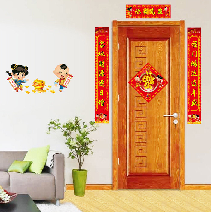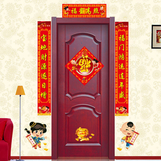 新年福星高照大门对联装饰墙贴纸乔迁新家布置喜庆墙壁贴花自粘画