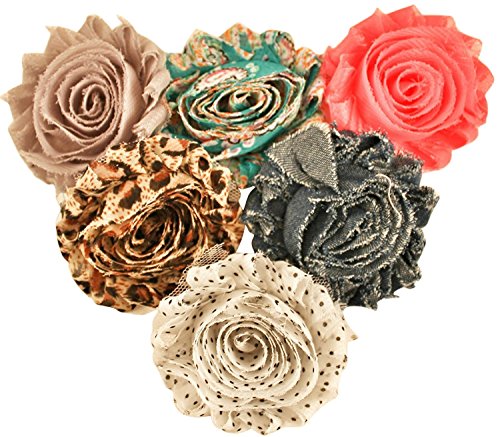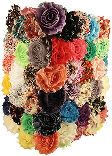 - Chiffon flower grab bag contains an assortment of 50 of chevron, inside-out, polka-dot, animal print and camo 2.5" shabby chiffon flowers.