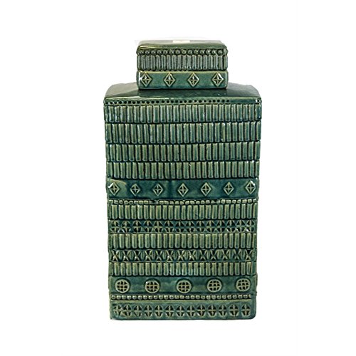 Benzara Decorative Ceramic Tribal Covered Jar, Green