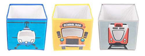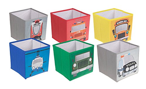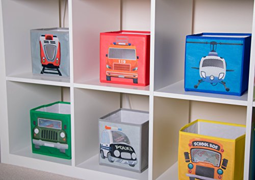 Army Jeep, Firetruck, Helicopter, Police Car, School Bus, Train, 6 Vehicle Collapsible Storage Organizers by Clever Creations | Folding Storage Box | Perfect Size Chest for Books, Shoes & Games