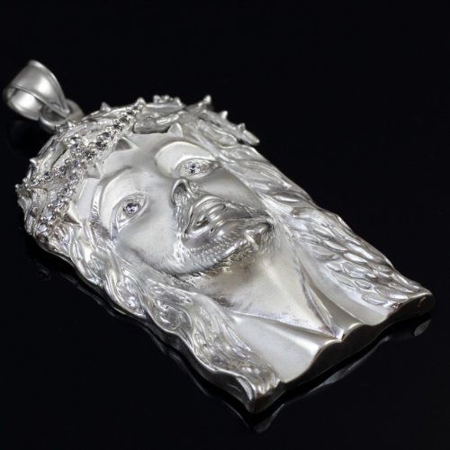 -. Binding : Jewelry -. Brand : Religious Jewelry by FDJ -. Color : Silver -. Department : womens -. Feature : impressive iced-out Jesus Christ face sculpture cz pendant (Large) / expertly crafted with pure 925 sterling silver and set with round-shaped diamond-colored cubic zirconia stones / proudly made in the USA; ships from the manufacturer directly to the customers themselves / comes with a gold rolo chain and free special gift packaging -. Label : Claddagh Gold -. Manufacturer : Claddagh Gold -. Model : P554SV -. MPN : JESUS03SV -. PartNumber : JESUS03SV -. ProductGroup : Jewelry -. ProductTypeName : FASHIONNECKLACEBRACELETANKLET -. Publisher : Claddagh Gold -. Studio : Claddagh Gold -. Title : 925 Sterling Silver Iced-out Jesus Face CZ Pendant (Large)