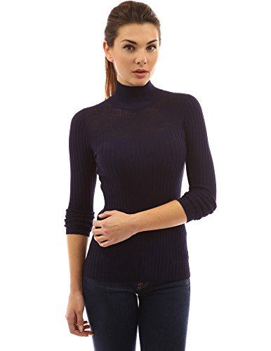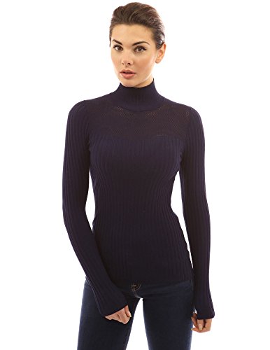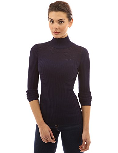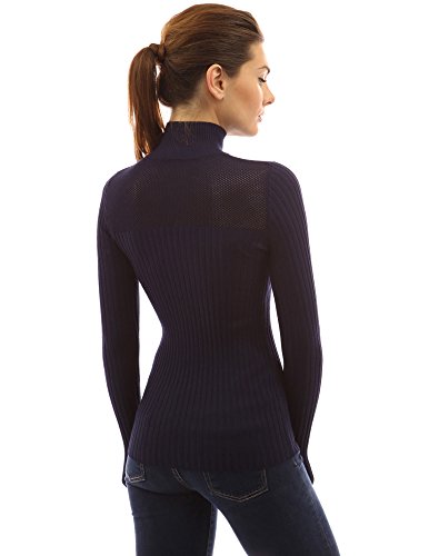 PattyBoutik Turtleneck Eyelet Inset Sweetheart Long Sleeve Ribbed Pullover Sweater. Model in pictures is 5 feet 8 inches (173cm) tall wearing size S.