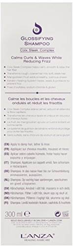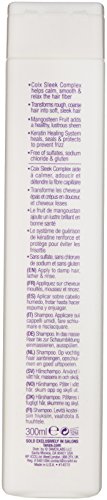 Makes hair exceptionally smooth and glossy. Keratin Healing System instantly heals, seals and protects, effectively smoothing the hair to stop frizz, while adding a brilliant shine. Organic Coix Seed calms curls and waves for super smooth looks. Hair glows with a healthy, lustrous radiance. Daily shampoo gently cleanses hair while eliminating frizz. Contains natural Gugo Bark for rich, abundant lather. Free of sulfates, parabens, gluten & sodium chloride.Feature