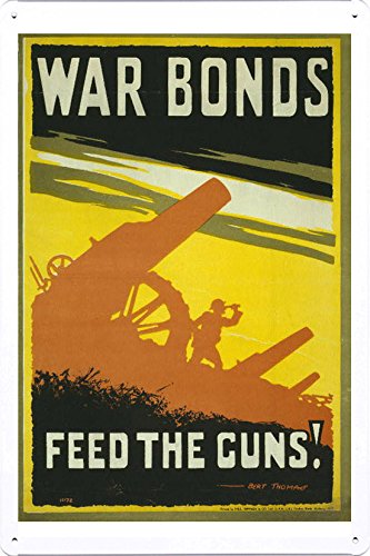 World War I One Tin Sign Metal Poster (reproduction) of War bonds. Feed the guns!