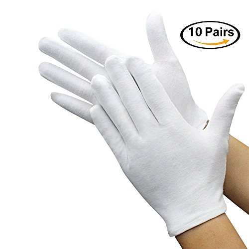 Wholesale White Soft 100% Cotton Work/Lining Glove Coin Jewelry Silver Inspection Gloves, Large Medium Size (10 pairs)