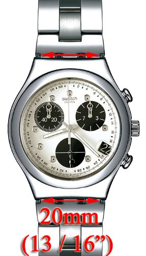 -. Feature : Black Soft Resin Watch Band / Most Popular Sporty Rally Racing Style Design / Fits Irony Chronograph Watch or Other Swatch Models Takes 20mm Size Band / 20mm (Notched) / Large Black Plastic Buckle