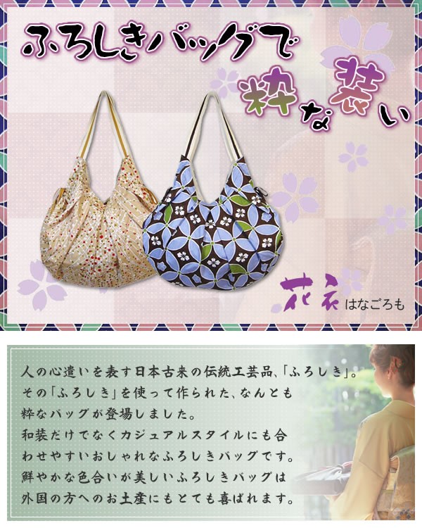 日本古来の伝統工芸品ふろしき。そのふろしきを使って作られた、なんとも粋なバッグが登場。和装だけでなくカジュアルスタイルにも合わせやすいお洒落なふろしきバッグです。