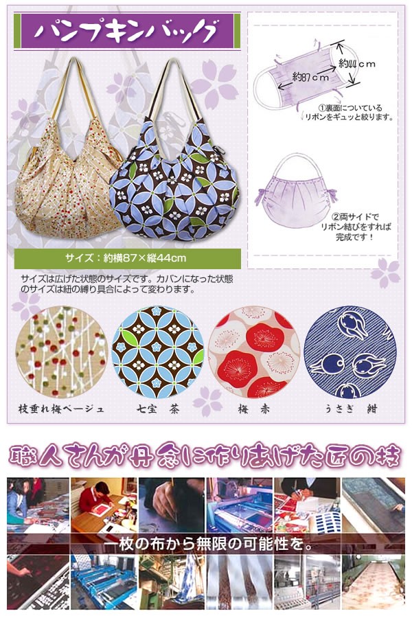 日本古来の伝統工芸品ふろしきそのふろしきを使って作られた、なんとも粋なバッグが登場和装だけでなくカジュアルスタイルにも合わせやすいお洒落なふろしきバッグですサイズ約横87×縦44cm(広げた状態)個装サイズ:43.5×44×1cm重量221g個装重量:300g素材・材質綿100%製造国日本