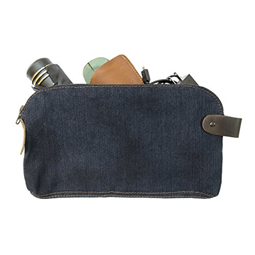 Reporpused Denim Large All Purpose Dopp Kit Utility Bag (Cords, Chargers, Tools, School / Office Supplies) Handmade by Hide & Drink