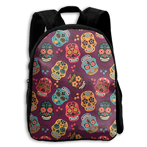 (FUNZONE)/Accessories/Luggage, Bags Travel/DIRECT FROM USA/Colorful Mexican Sugar Skulls Seamless Pattern Printing Canvas Schoolbag Kid School Bags Should...