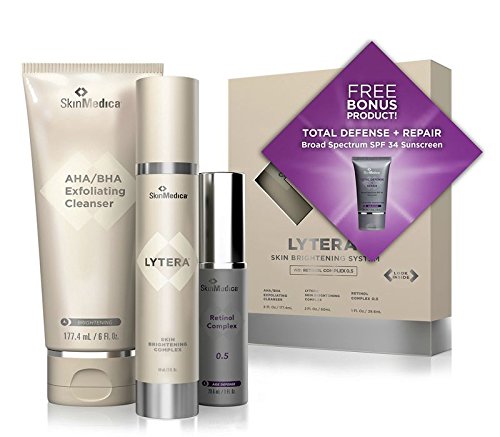 System includes AHA/BHA Exfoliating Facial Cleanser 6 Fl oz., Lytera Skin Brightening Complex 2 Fl oz., Retinol Complex 0.5 1 Fl oz and Free Total Defense & Repair SPF 34