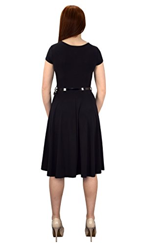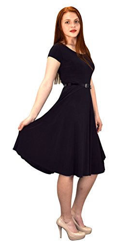 New Summer Collection by Peach Couture. Peach Couture is a registered trademark. Exude effortless style with this appealing knee length A-line dress. This versatile dress wont let you down and will accentuate your fashion prowess whether for a casual occasion or a cocktail party. This beautiful piece features a soft and comfortable material, and swingy skirt. The length of the dress falls at the knee. Comes in four adorable colors: Blue, Green, Black and Floral. Fits Approximately Dresses Sizes: Small US: 2-4 Length: 40", Bust: 32", Waist: 28", Hips: 60". Medium: US: 6 Length: 40", Bust: 34", Waist: 30", Hips: 62". Large US: 8 Length: 40", Bust: 36", Waist: 32", Hips: 64". XL US: 10 Length: 40", Bust: 38", Waist: 34", Hips: 66". Product Material: 92% Polyester 8% Elastane. Our model is 5' 4 and wears size small.Feature