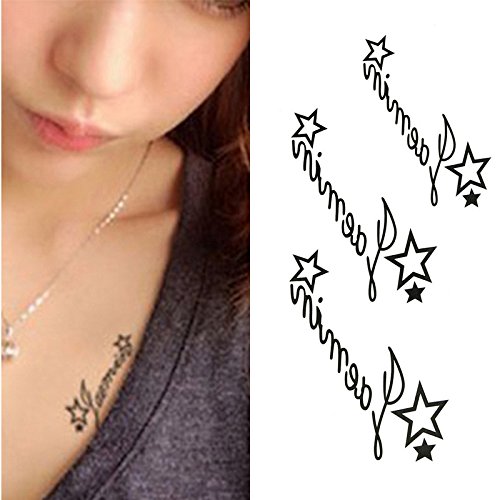 Oottati Small Cute Temporary Tattoo Star Words Quote (Set of 2)