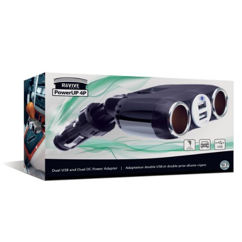 ReVIVE PowerUP 4P 4 Port Car Charger and DC Adapter. Simple and Effective - Power up your devices with this easy-to-use USB and DC charger. The PowerUP 4P lets you charge an array of your favorite devices in the car , including smartphones , mp3 players , e-readers , and iPads. It's equipped with 2 universal USB charging ports as well as 2 DC outlets for additional DC-plug devices and works with nearly any OEM USB charging cable. At 2A , this charger delivers a fast and on-the-go charging solution. Smart Design - Built with a 180 degree articulating plug , the PowerUP 4P's lightweight and adjustable frame makes it an ideal travel charger. When you need a quick charge , simply grab and plug in for an instant power fix. A built-in fuse (plus a spare) provides added protection to safeguard against surges. Rest assured this device will provide a safe and effective charging solution for all your needs! Works With:. Smartphones: Samsung Galaxy S6 , S6 Edge , S6 Edge+ , S6 Active , Note 5 , Note Edge , Note 4 , S5 , Xcover 3 / Apple iPhone 6s , 6s Plus , 6 , 6 Plus , 5s , 5c , 5 / HTC One M9 , M9+ , M8S , Desire 820 , 826 / Motorola Moto X , E , G , Droid Turbo / LG G4 , G4c , G Flex 2 , G3 , Volt 2 , Escape 2 , Ultimate 2 / Sony Xperia Z4v , C4 , M4 Aqua , Z3 , M2 / Microsoft Lumia 540 Dual , 430 , 640 , 640 XL / Nokia Lumia 830 , 730 , 735. Tablets: Acer Iconia One / Apple iPad 4 , 3 , Air 2 , mini 3 / ASUS MeMO Pad , ZenPad , Transformer Pad , FonePad / HP Stream / Google Nexus 9 , 7 , 10 / Lenovo Tab 2 A8 , A10 , IdeaPad , ThinkPad / LG G Pad , X , F / Microsoft Surface 3 , 2 , Pro 3 , 2 / Samsung Galaxy Tab S2 , A , Active , 4 , S , Pro , 3 , Note. GPS Units: Garmin , Magellan , TomTom. MP3 Players: Apple / Kubik Evo / SanDisk / Samsung / Sony / Philips / Zune HD / PONO. And More!