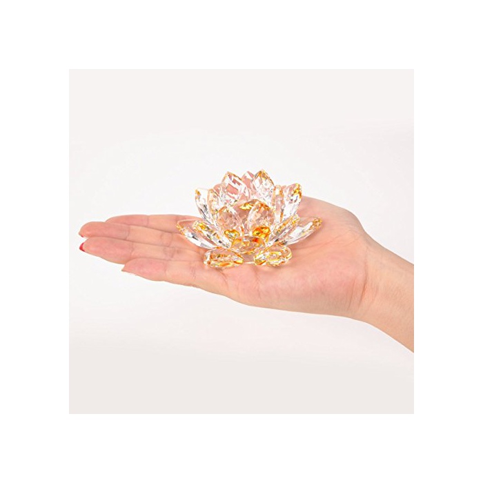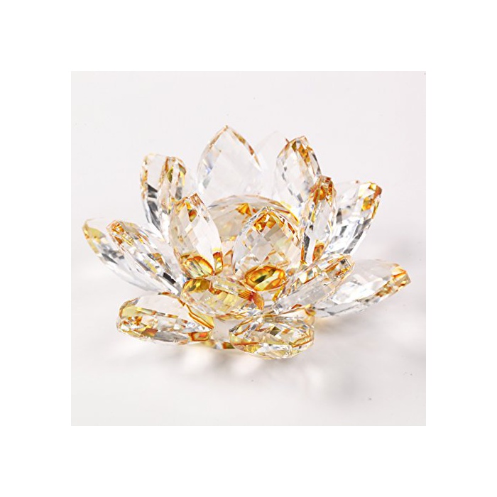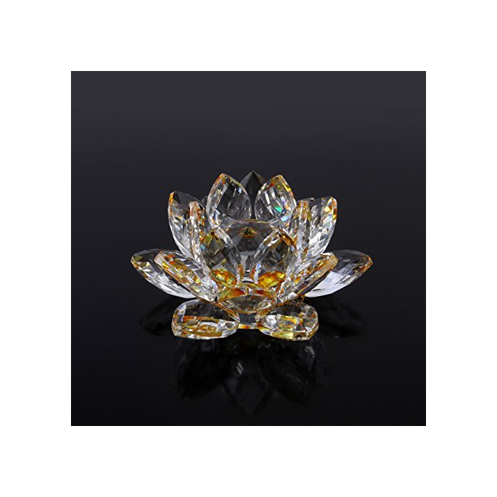 개운 산키《차》 크리스탈 유리 연꽃의 화풍수 힐링 장식품 오브제 인테리어 (옐로우)