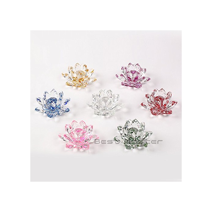 Best Master 개운 산키《차》 크리스탈 유리 연꽃의 화풍수 힐링 장식품 오브제 인테리어